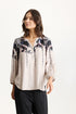 An elegant blouse from IN FRONT in a light viscose quality that provides a beautiful drape. The blouse is designed with a lovely and unique print, a V-neckline, and a button placket with delicate buttons. The three-quarter length sleeves have gathering details at the shoulders and an elastic cuff, which gives it a feminine look. The loose fit makes the blouse incredibly comfortable to wear.