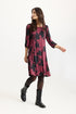 Beautiful dress from IN FRONT. Swing dress with round neckline, three-quarter sleeve length and pintucks down on the front of the dress. The dress is lined on the front and back and is made of a nice soft and stretchy jersey material in beautiful print. A versatile dress that is great for everyday and party.