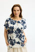 Blouse from IN FRONT with a beautiful print. Round neckline, closed with a single button. Lovely light and airy blouse with short sleeves.