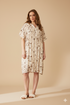 Beautiful dress from IN FRONT. Neckline with small stand-up collar and button closure all the way down. The dress has seams across the chest, which gives a nice ruching effect. The dress has a roomy fit - A lovely airy summer dress.