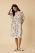 Beautiful dress from IN FRONT. Neckline with small stand-up collar and button closure all the way down. The dress has seams across the chest that give a nice ruching effect. The dress has a roomy fit - A lovely airy summer dress.