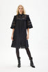 Beautiful and feminine dress from IN FRONT. Dress with a beautiful lace pattern on the front and sleeves, as well as a frill on the shoulders that continues around the back. Beautiful dress for everyday wear and parties.