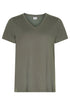 Flot t-shirt fra IN FRONT. Kortærmet t-shirt med V-udskæring. Den er lavet i en lækker blød modal blanding og holder formen i vask. En alsidig t-shirt i en behagelig pasform, som passer godt ind i din klassiske og moderne basisgarderobe.